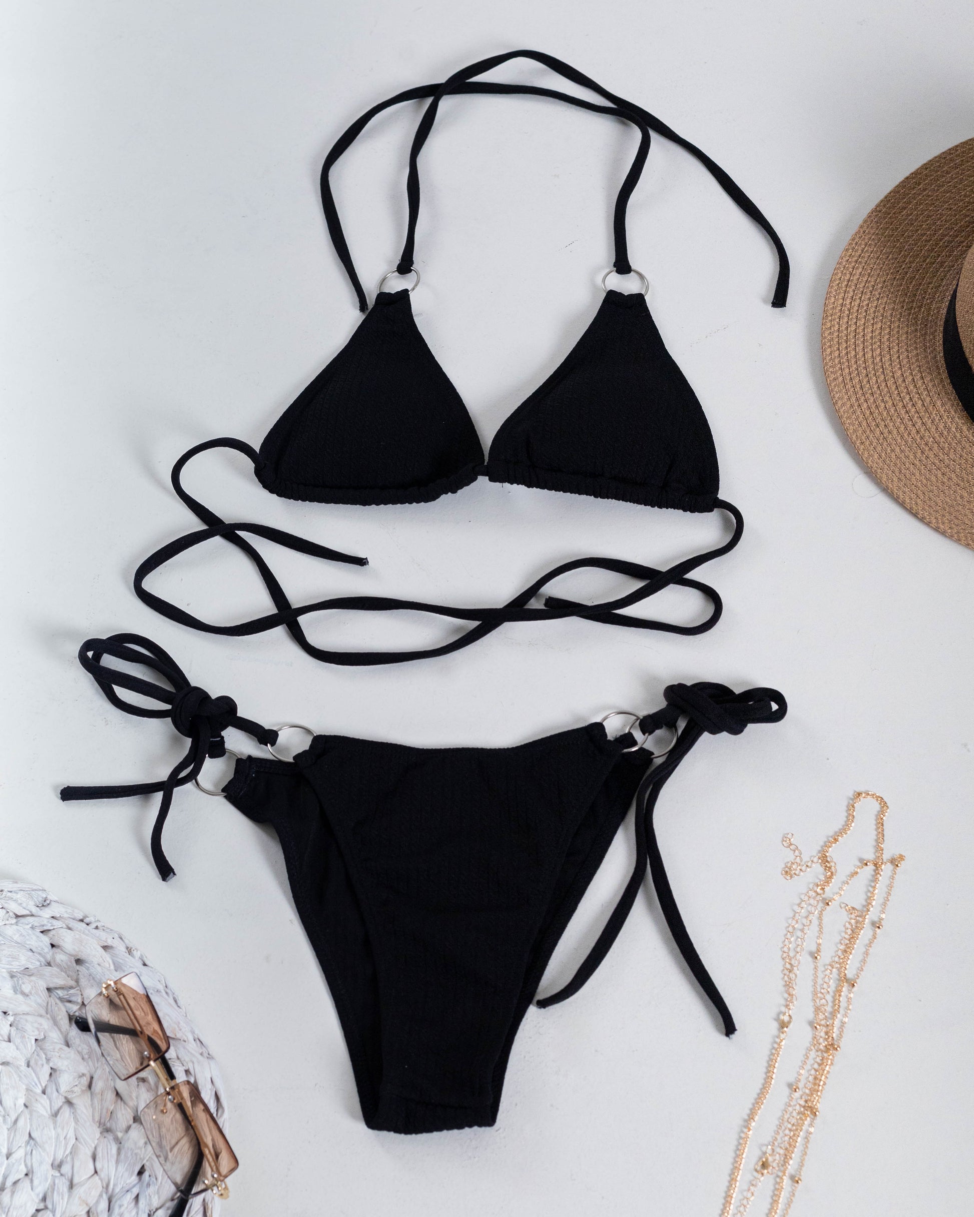 This textured bikini combines simplicity and allure, with its adjustable design for ultimate comfort. Enjoy the perfect blend of style and comfort with this must-have beach essential. With a flattering bikini cut feel confident wherever you are in this textured string bikini.